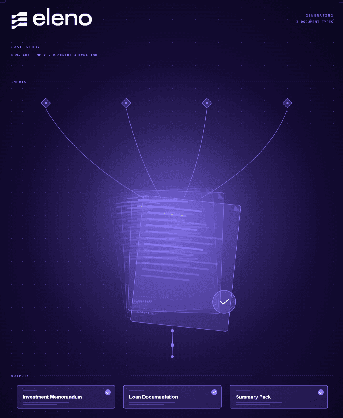 For an Australian Non-Bank Lender Eleno found a documentation process that would benefit from AI & Automation significantly.